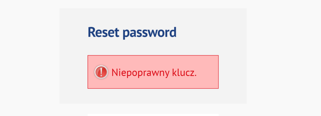 Po wpisaniu silnego hasła otrzymasz powiadomienie, że hasło zostało zmienione. Jeśli pojawi się poniższy komunikat może to oznaczać, jedno z poniższych: